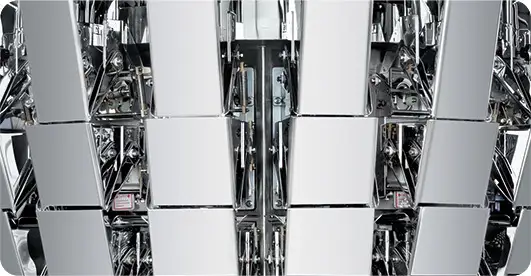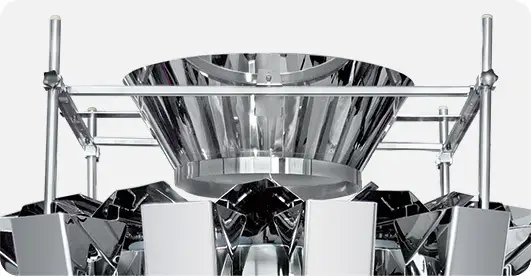 Three layers 16 heads multi-weigher packing machine can be used for weighing a single material or two mixed materials. The memory hopper is added to increase the probability of weighing combination and improve the accuracy of weighing materials. It is made of a 304 stainless steel frame and food class buckets. The 16 heads multihead weigher is suitable for melon seeds, peanuts, nuts, almonds, raisins, candies, pistachios, potato chips, shrimp cracks, dumplings, meatballs, etc.